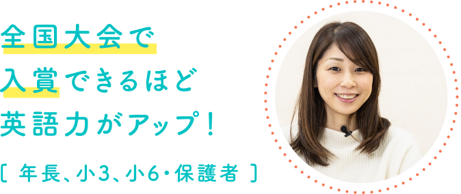 友人から、英語もタイピングも学べるところがあると紹介してもらい体験入学へ行きました。そのときに子どもがすごく食いついて。「絶対に習いたい」と言ったんです。パソコンを触ったことがないのもそうですが、何より先生の授業がとても楽しくて、英語が好きになったんだと思います。現在、兄妹で通っているんですが、英単語の大会で兄が全国2位、妹が全国3位になるなど、本当にびっくりするほど英語力が身についています。