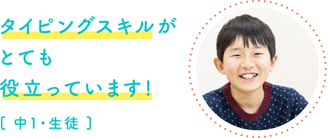 英語の力といっしょに、タイピングできる力も身についたのが、とても役に立っています。夏休みの読書感想文を書くときに、パソコンを使って原稿を速く書くことができました。