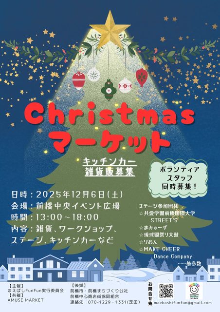 前橋中央イベント広場で行われるクリスマスイベント。雑貨やワークショップ、ステージ、キッチンカーなど。