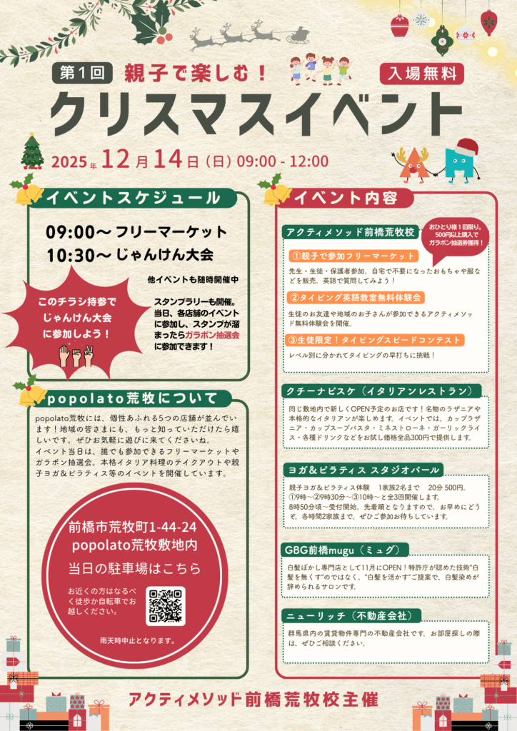 【開催場所】前橋市荒牧町1-44-24 popolato荒牧