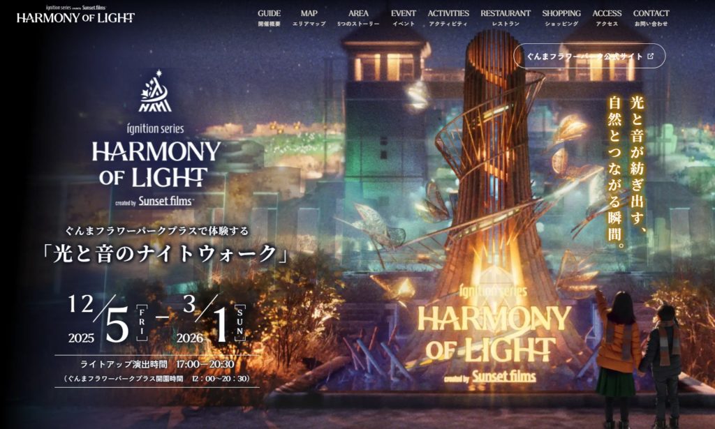 ぐんまフラワーパークプラスで体験する光と音のナイトウォーク